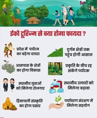 साथ ही स्थानीय युवाओं को भी उनके घर द्वार पर रोजगार मिलेगा। ईको टूरिज्म के तहत प्रदेश में 78 साइट्स का चयन किया गया है। जिससे प्रदेश के गांवों में पर्यटन के द्वार खुलेंगे। वहीं, लोकल लोगों को रोजगार में हिस्सेदारी मिलने के साथ-साथ स्थानीय उत्पादों और हिमाचली संस्कृति को भी बढ़ावा मिलेगा।