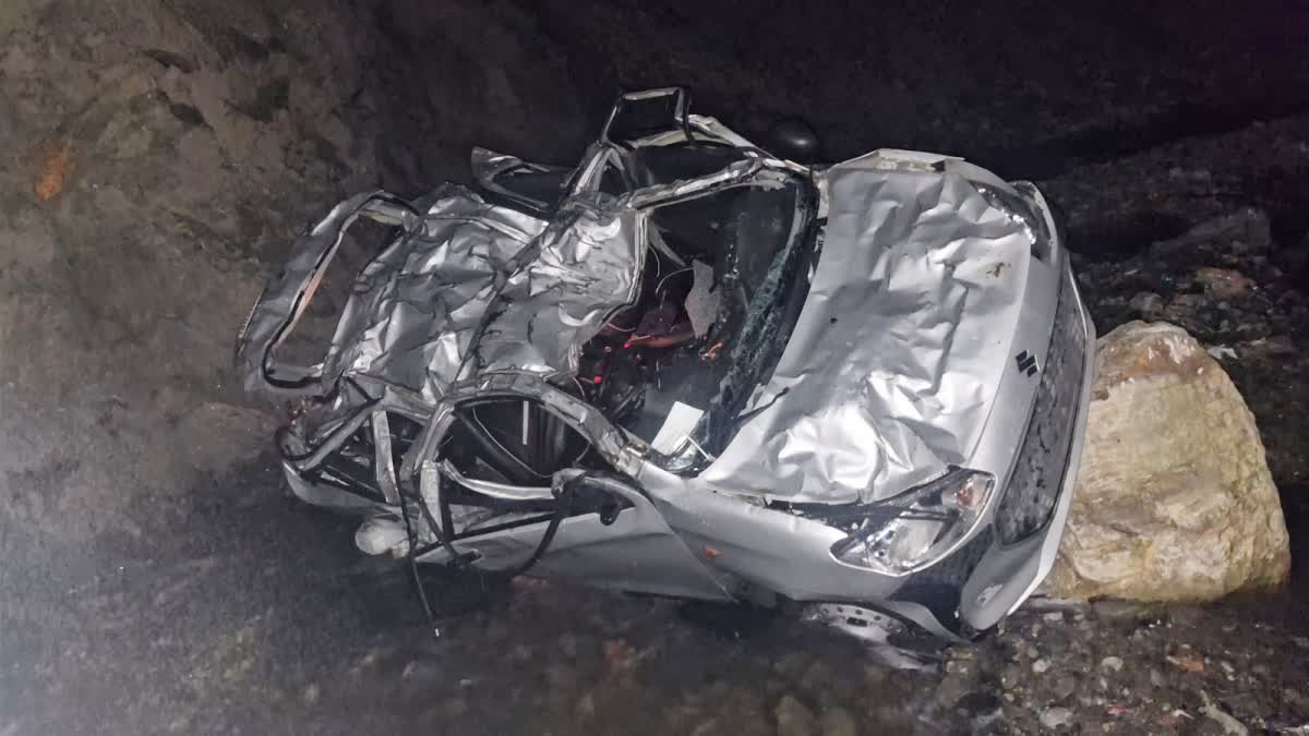 गहरी खाई में गिरी कार, एक ही परिवार के 2 बच्चों सहित 4 लोगों की मौत, गाड़ी के उड़े परखच्चे