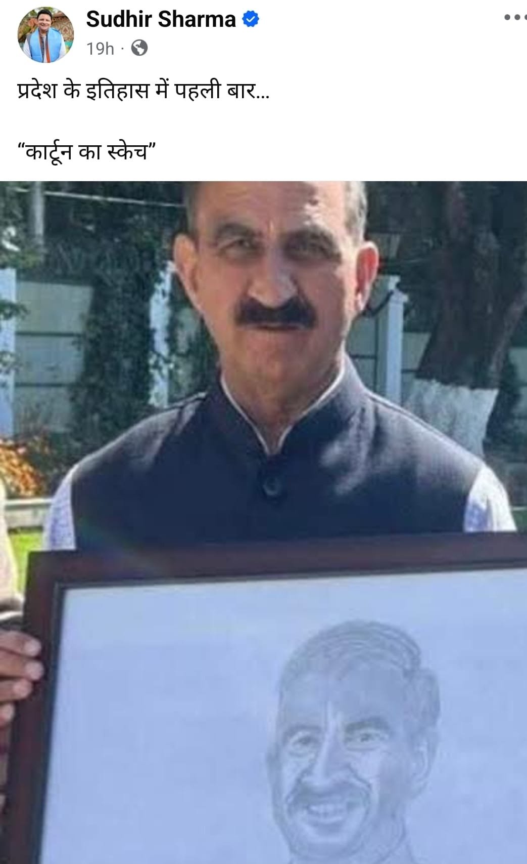 दरअसल, धर्मशाला से बीजेपी विधायक ने सोशल मीडिया पर सीएस सुखविंदर सिंह सुक्खू का एक फोटो शेयर किया, जिसमें सीएम हाथ में अपनी फोटो की स्केच लिए खड़े हैं। वहीं, इस फोटो पर विधायक ने कैप्सन लिखा, “प्रदेश के इतिहास में पहली बार कार्टून का स्केच”