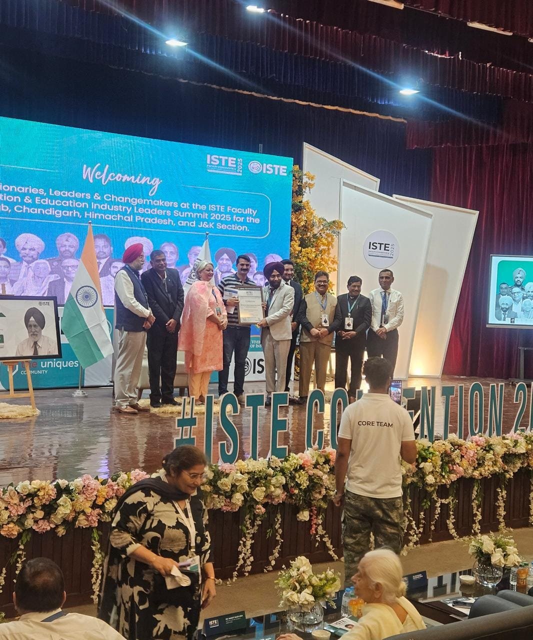 भारतीय तकनीकी शिक्षा सोसायटी (आईएसटीई) की ओर से स्वामी विवेकानंद इंस्टीट्यूट ऑफ इंजीनियरिंग एंड टेक्नोलॉजी, बनूर की ओर से यह समारोह आयोजित किया गया। टेक्निकल एजुकेशन एवं रिसर्च के क्षेत्र में विशेष उपलब्धि हासिल करने पर डा. संजय कुमार को बेस्ट टीचर्र-2025 अवार्ड से सम्मानित किया गया।