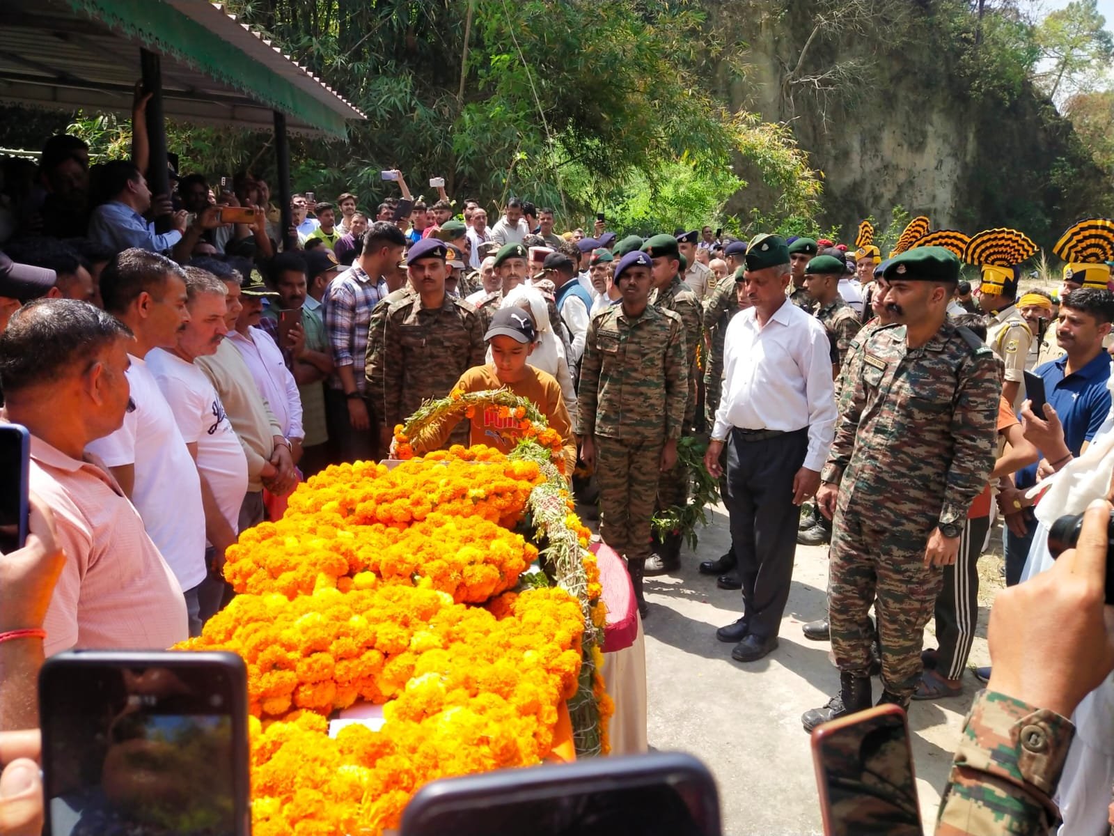 इस अवसर पर सैन्य अधिकारियों और क्षेत्र के गणमान्य लोगों के अलावा प्रदेश सरकार एवं प्रशासन की ओर से भी उपायुक्त अमरजीत सिंह, एसपी भगत सिंह ठाकुर और एसडीएम राकेश शर्मा ने शहीद की पार्थिव देह पर पुष्प चक्र अर्पित करके श्रद्धांजलि दी।